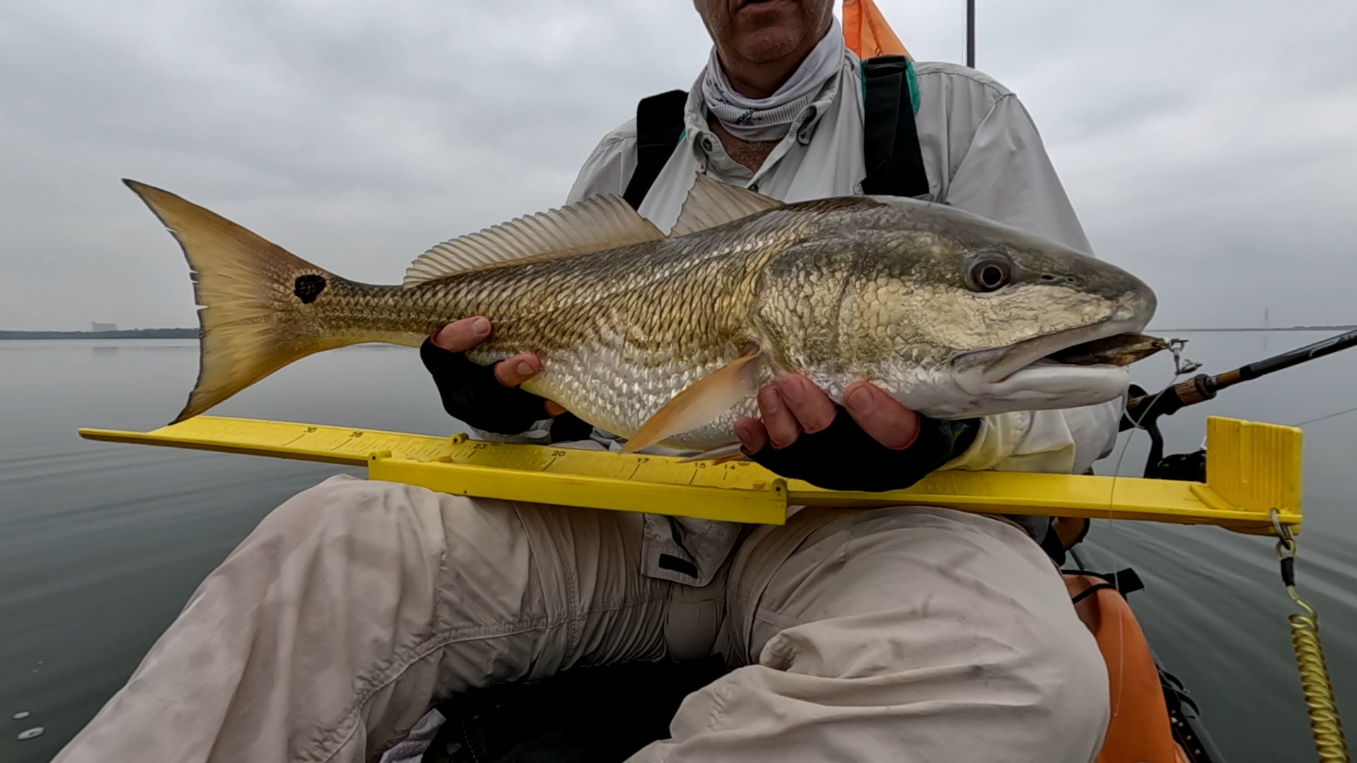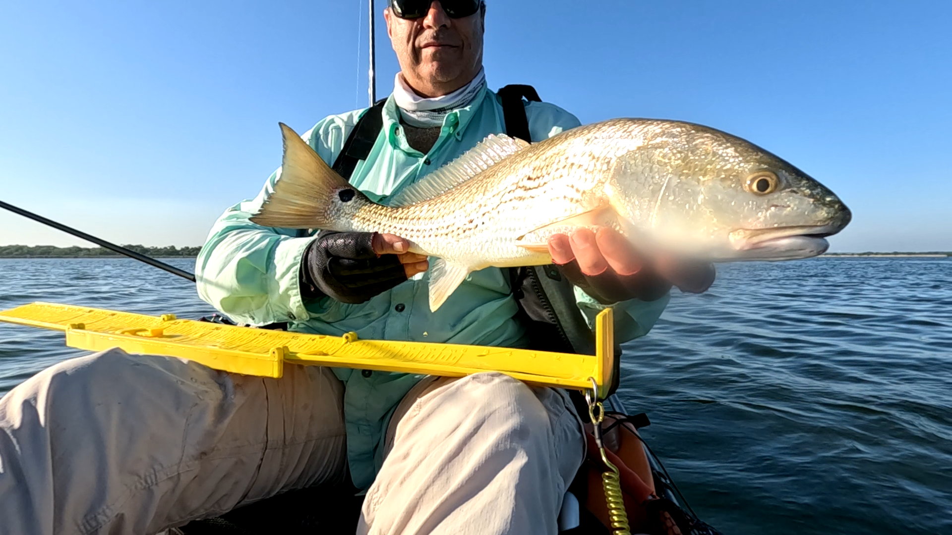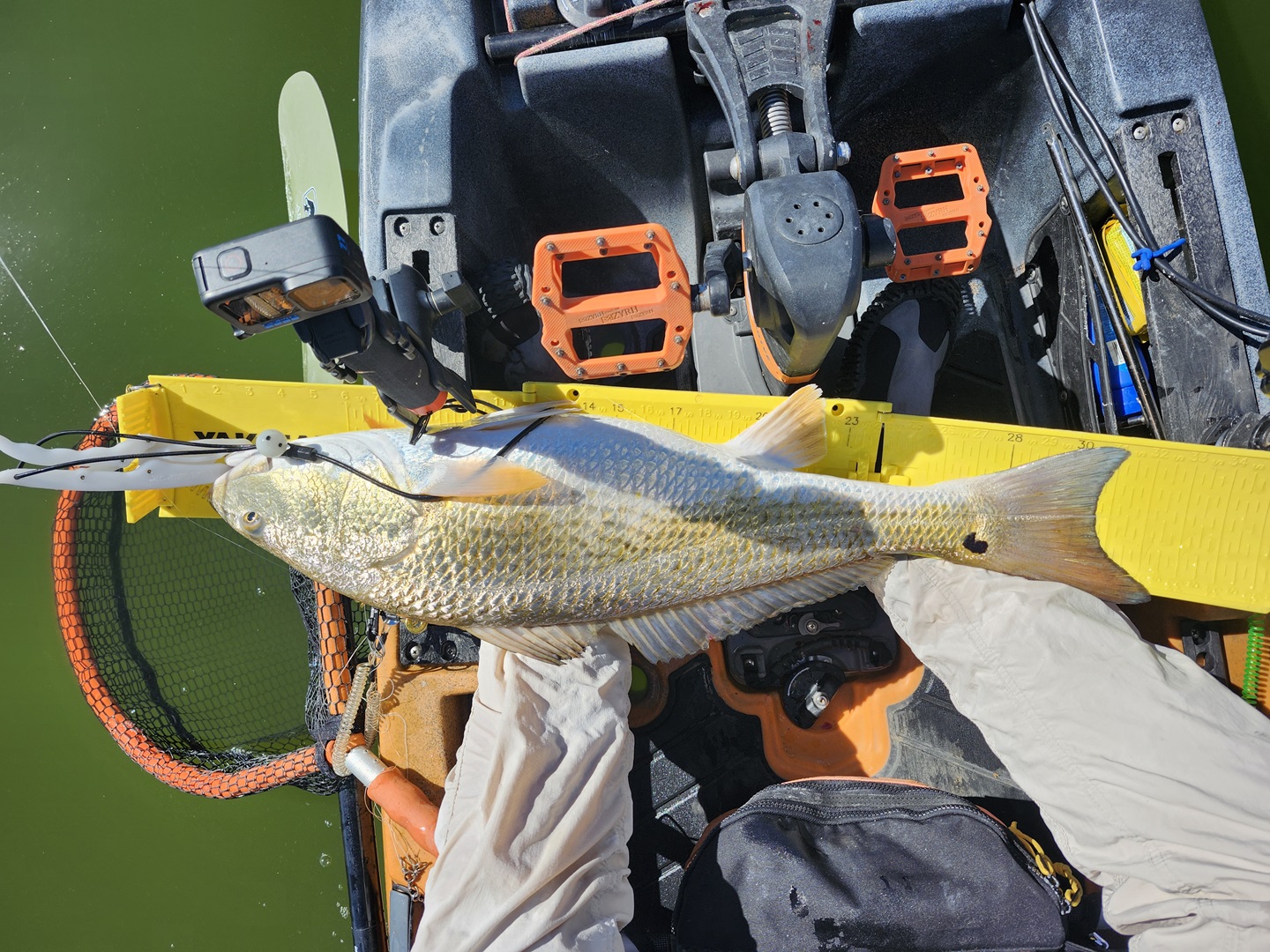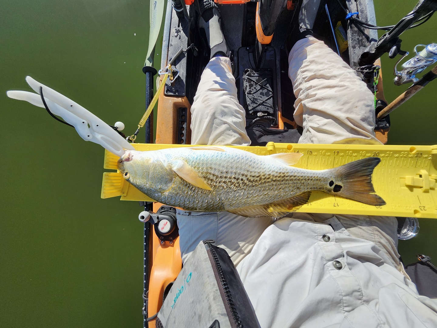 Largest redfish of the night caught kayak fishing at night on the way back; last outing of the trip.
