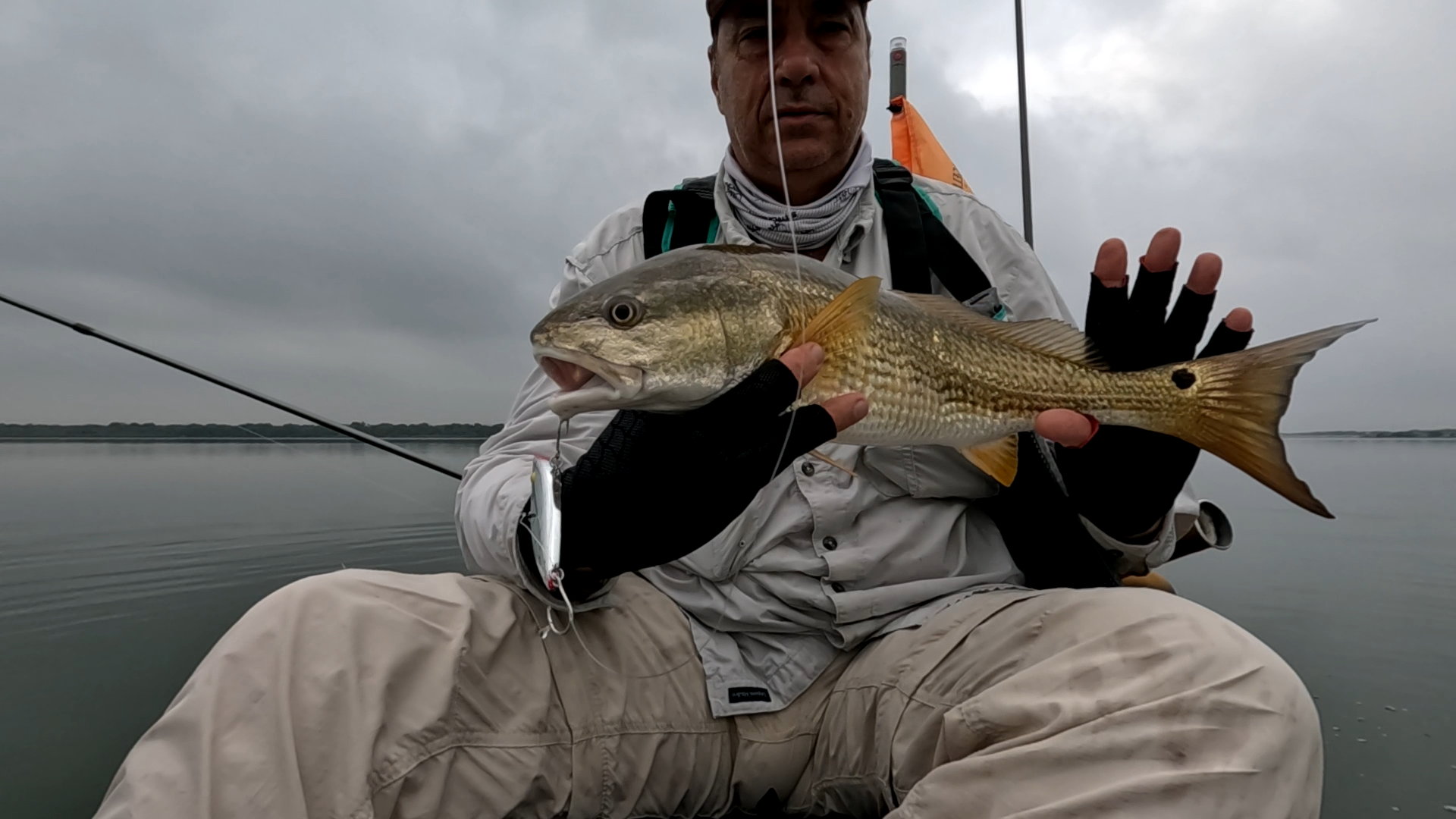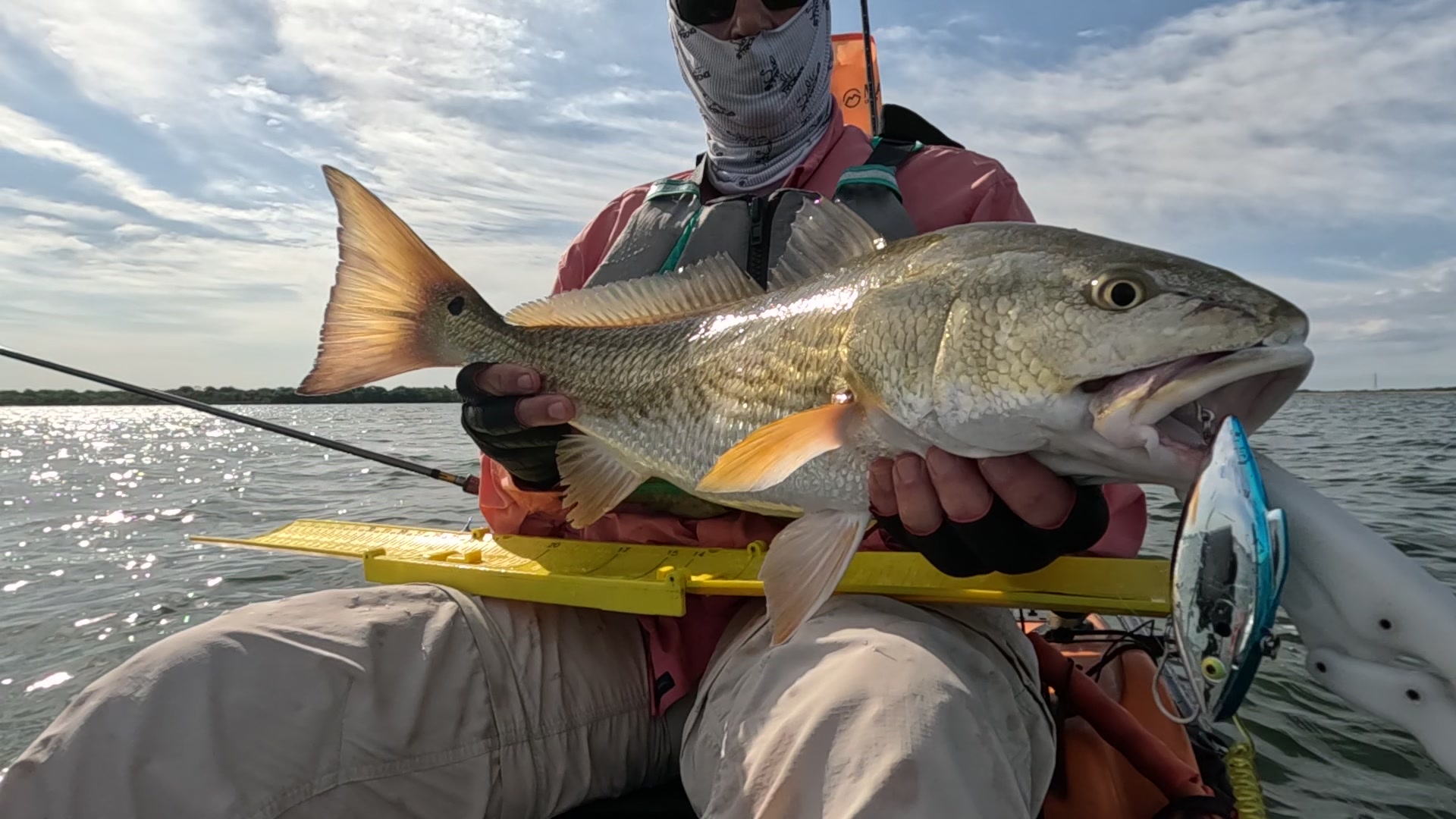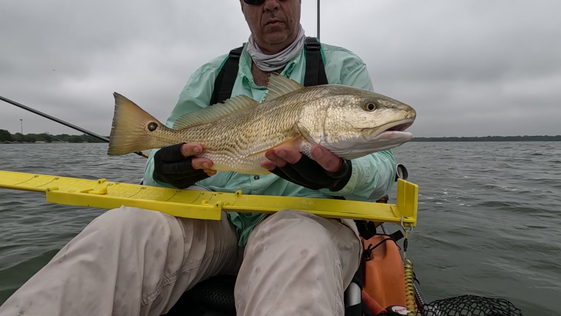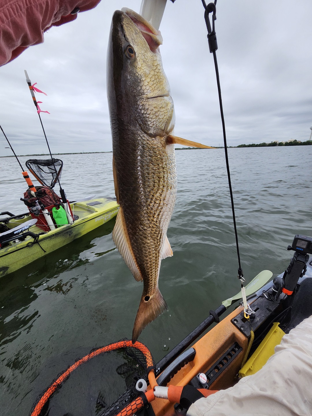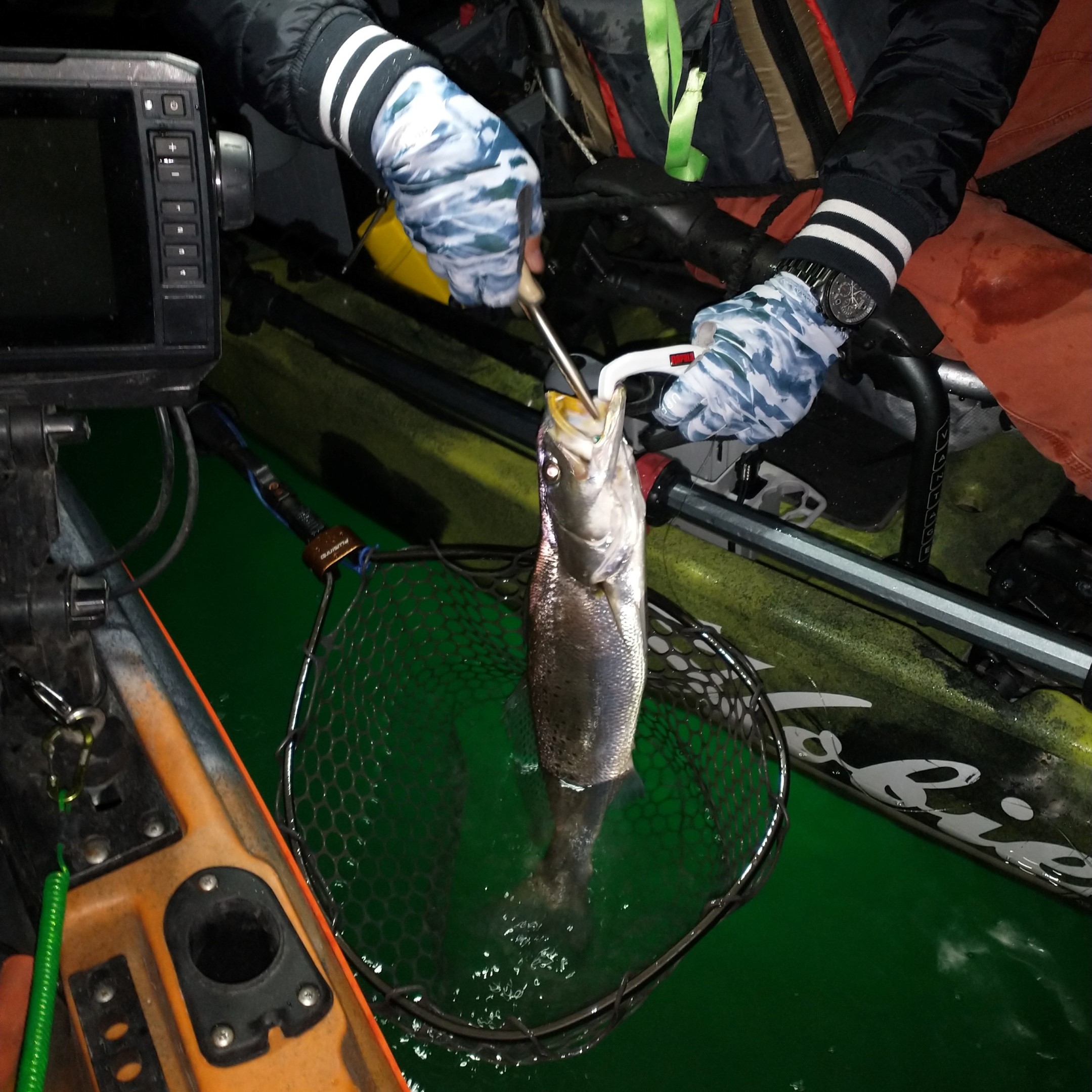 Largest redfish of the night caught kayak fishing at night on the way back; last outing of the trip.