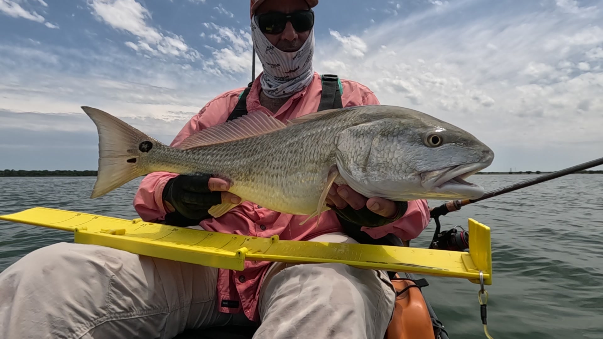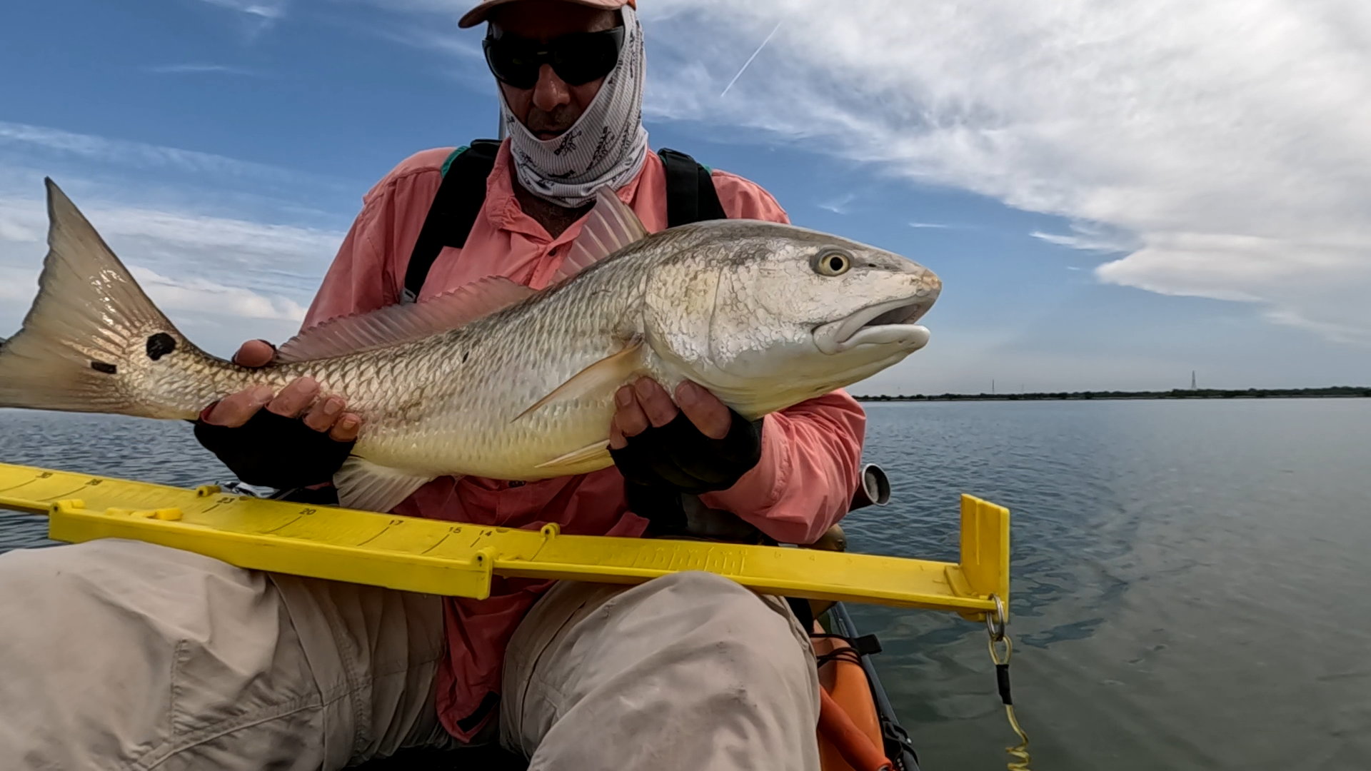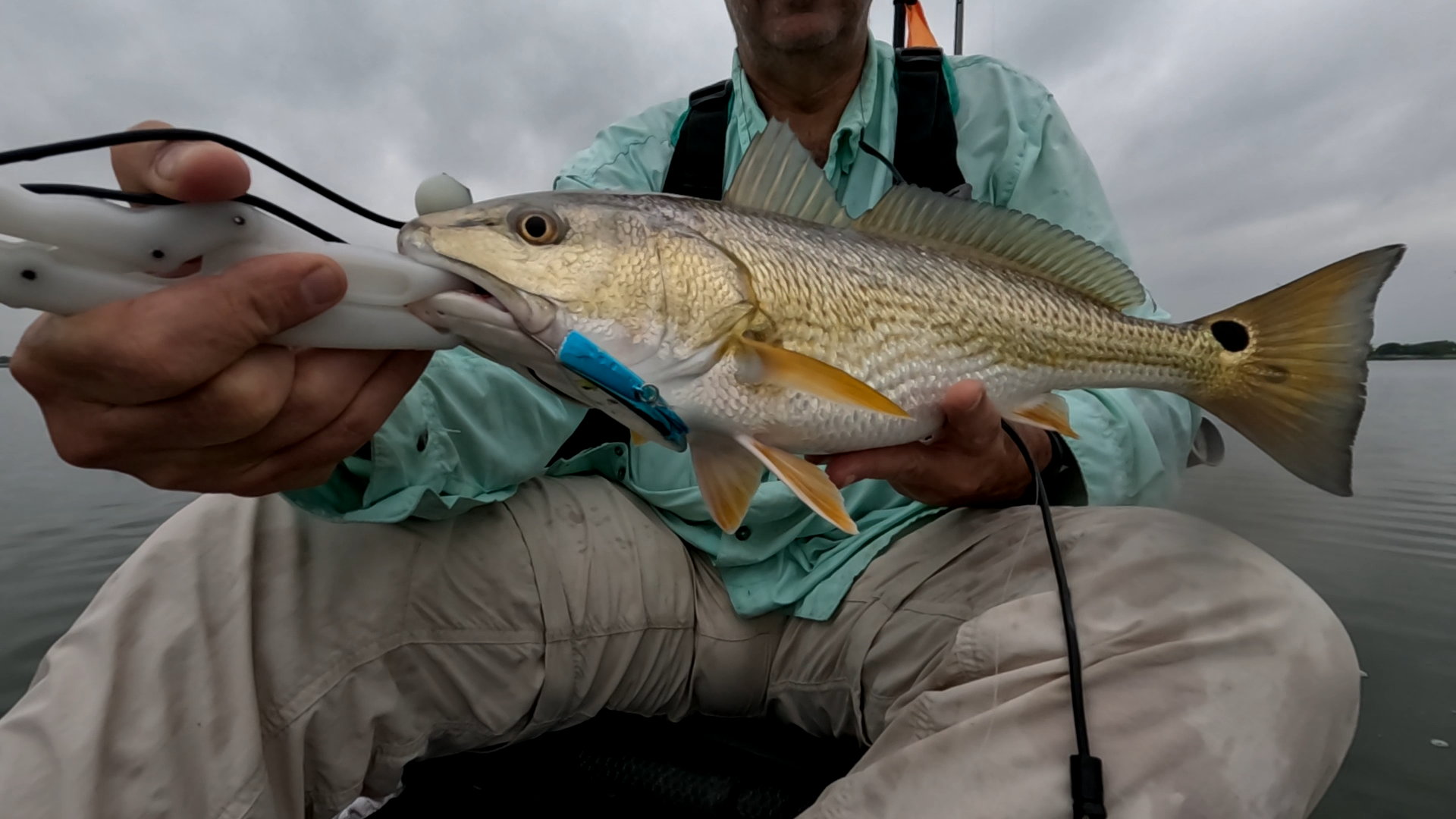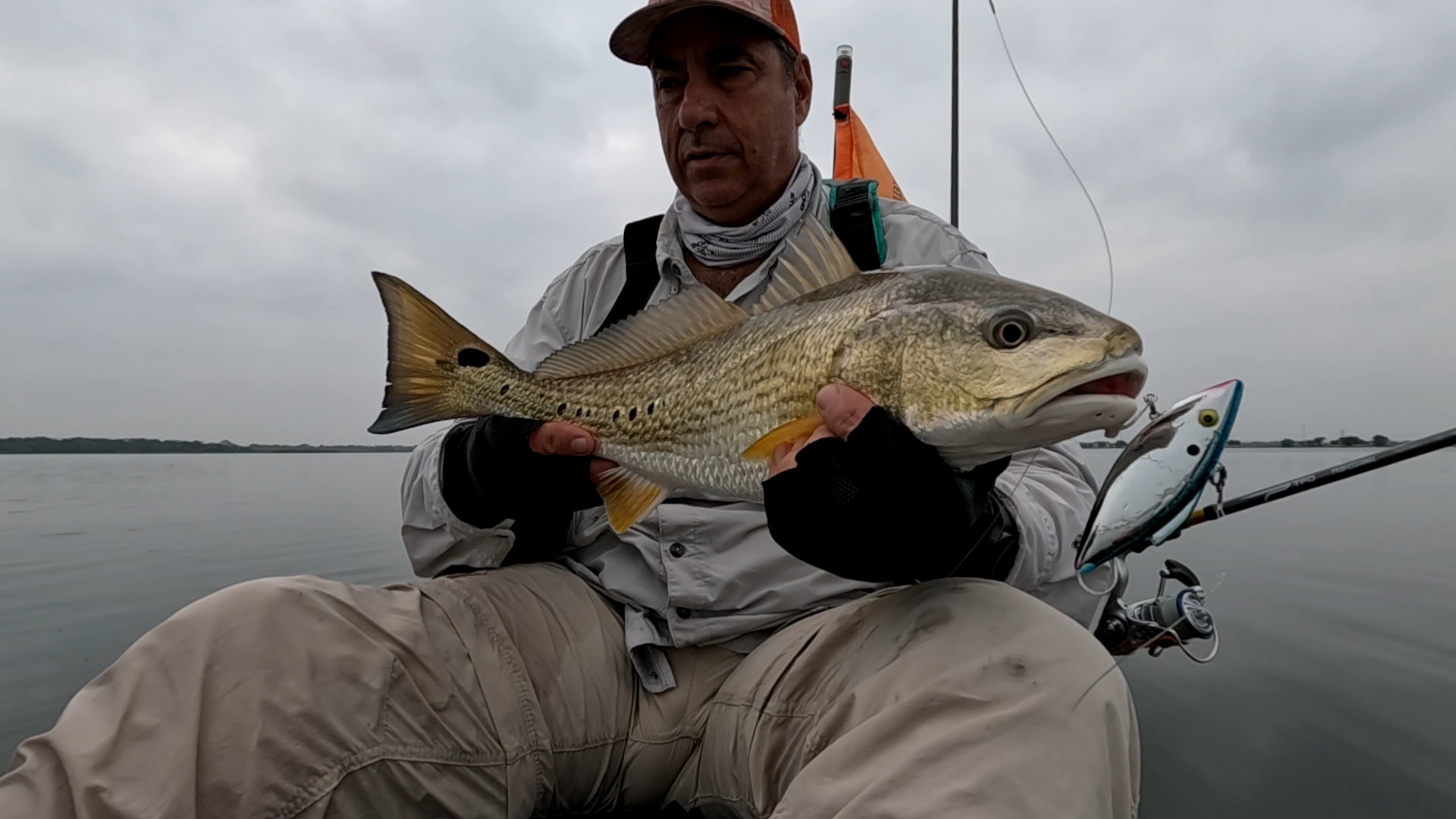 Largest redfish of the night caught kayak fishing at night on the way back; last outing of the trip.