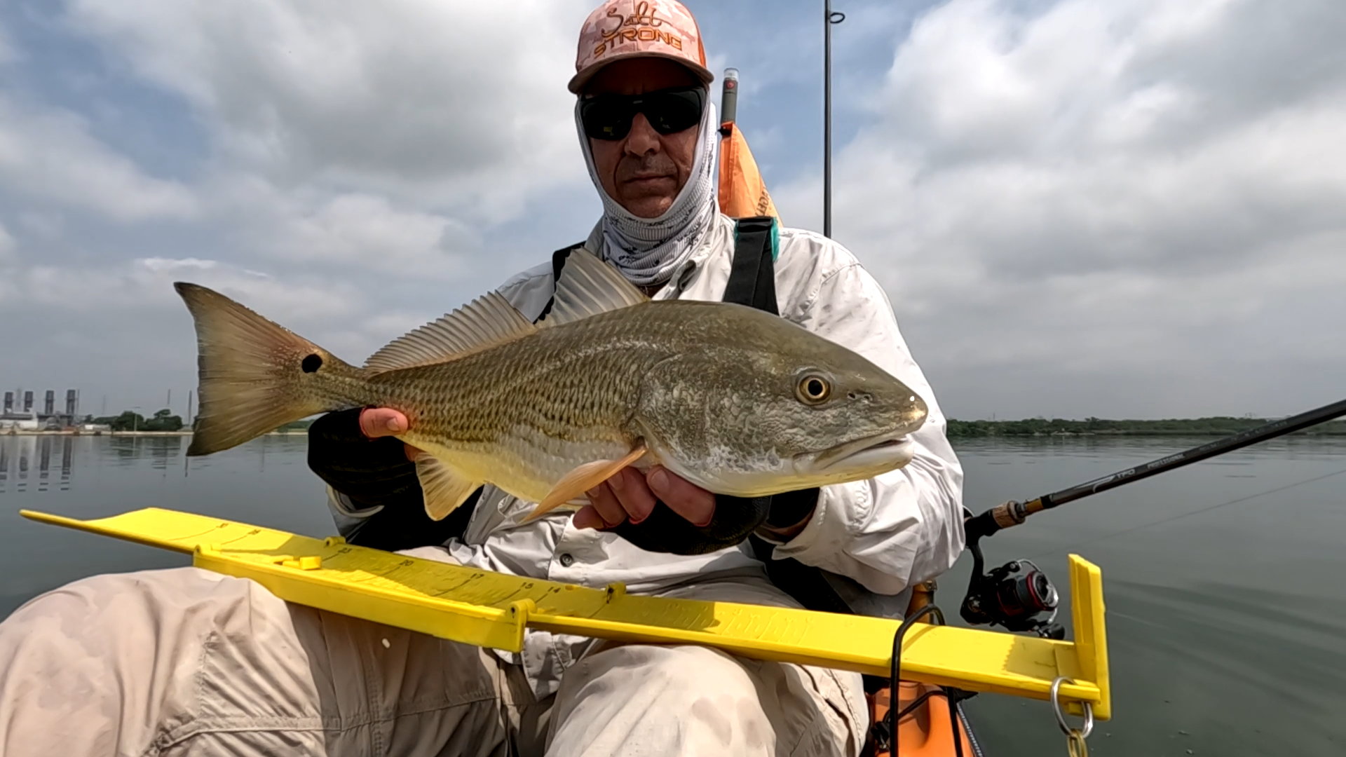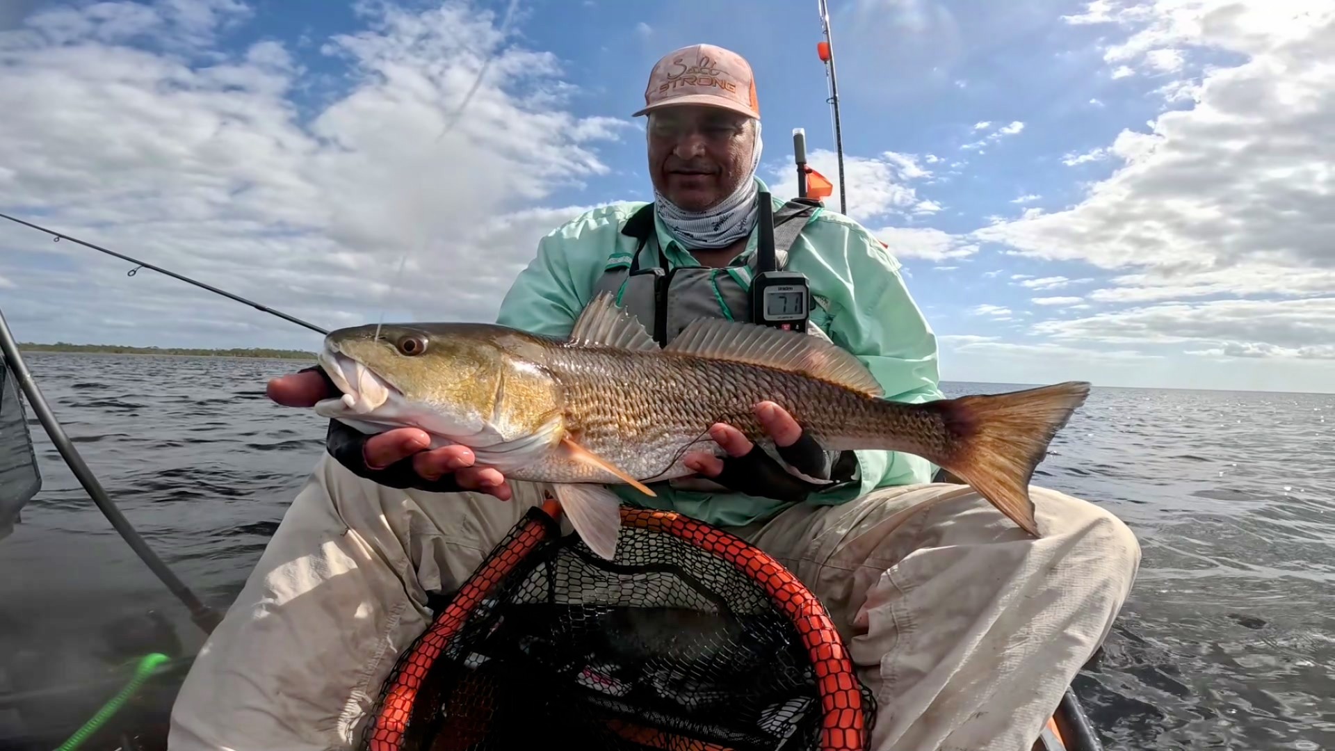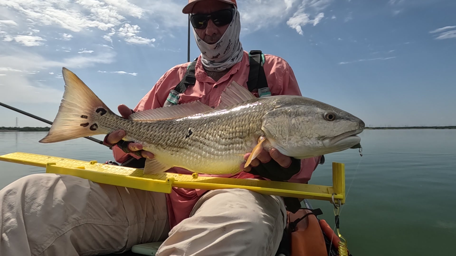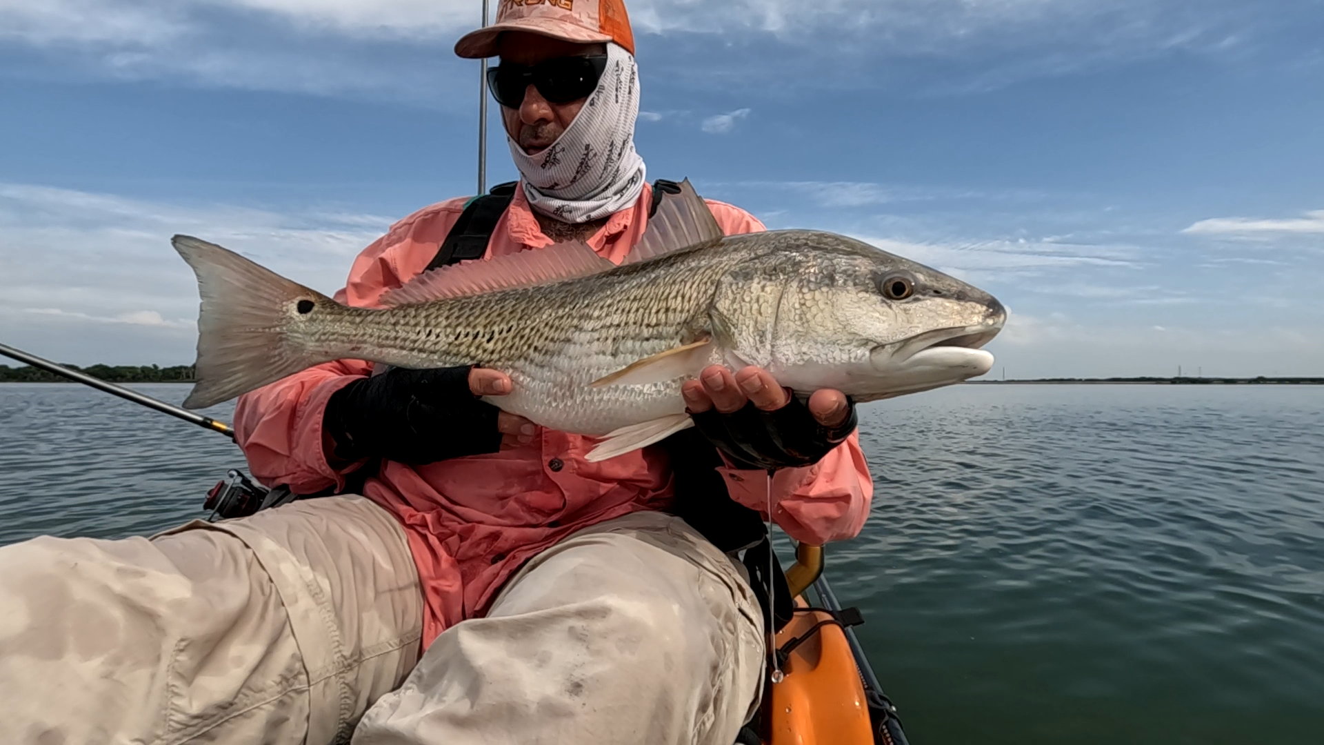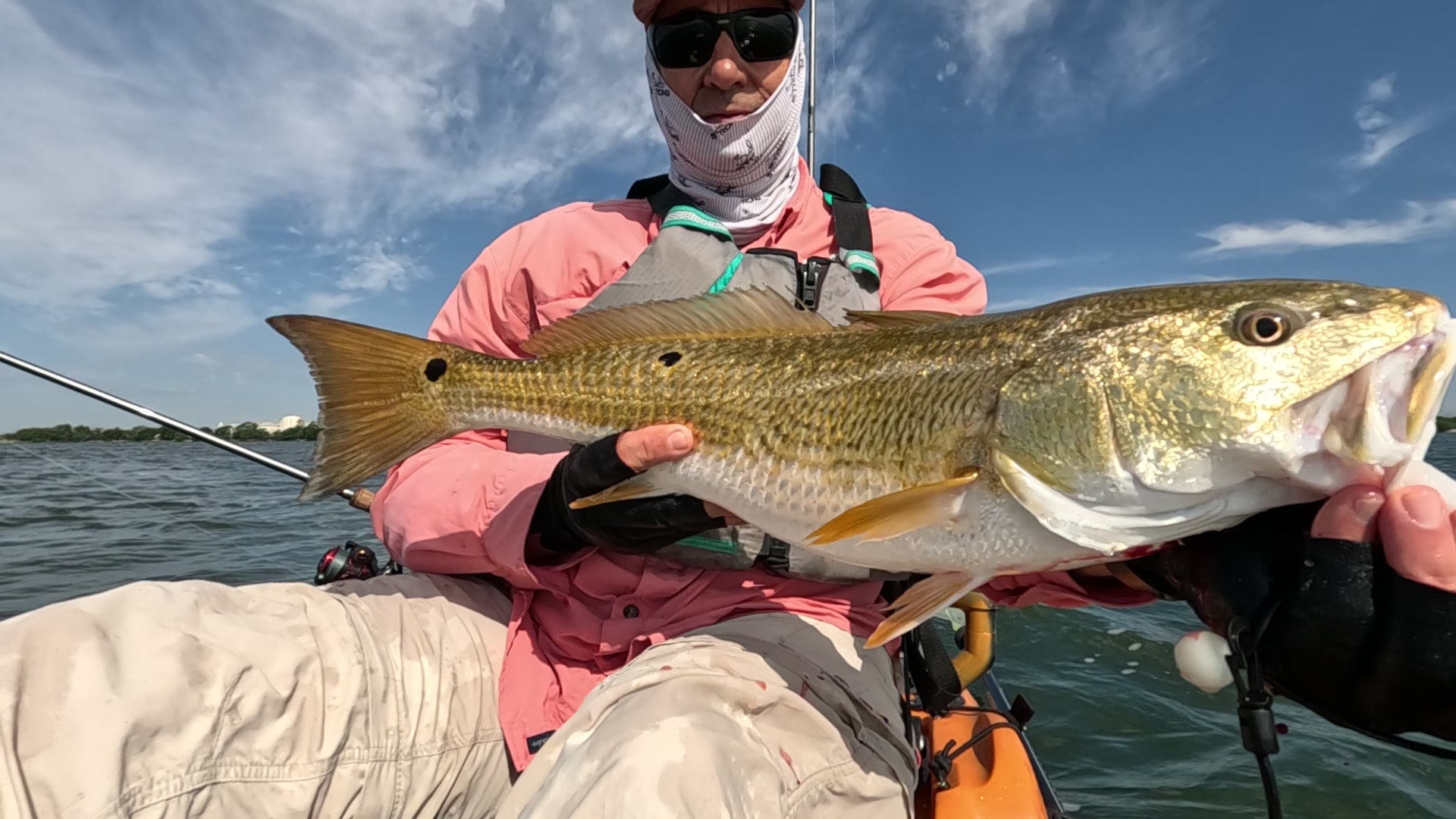 Largest redfish of the night caught kayak fishing at night on the way back; last outing of the trip.