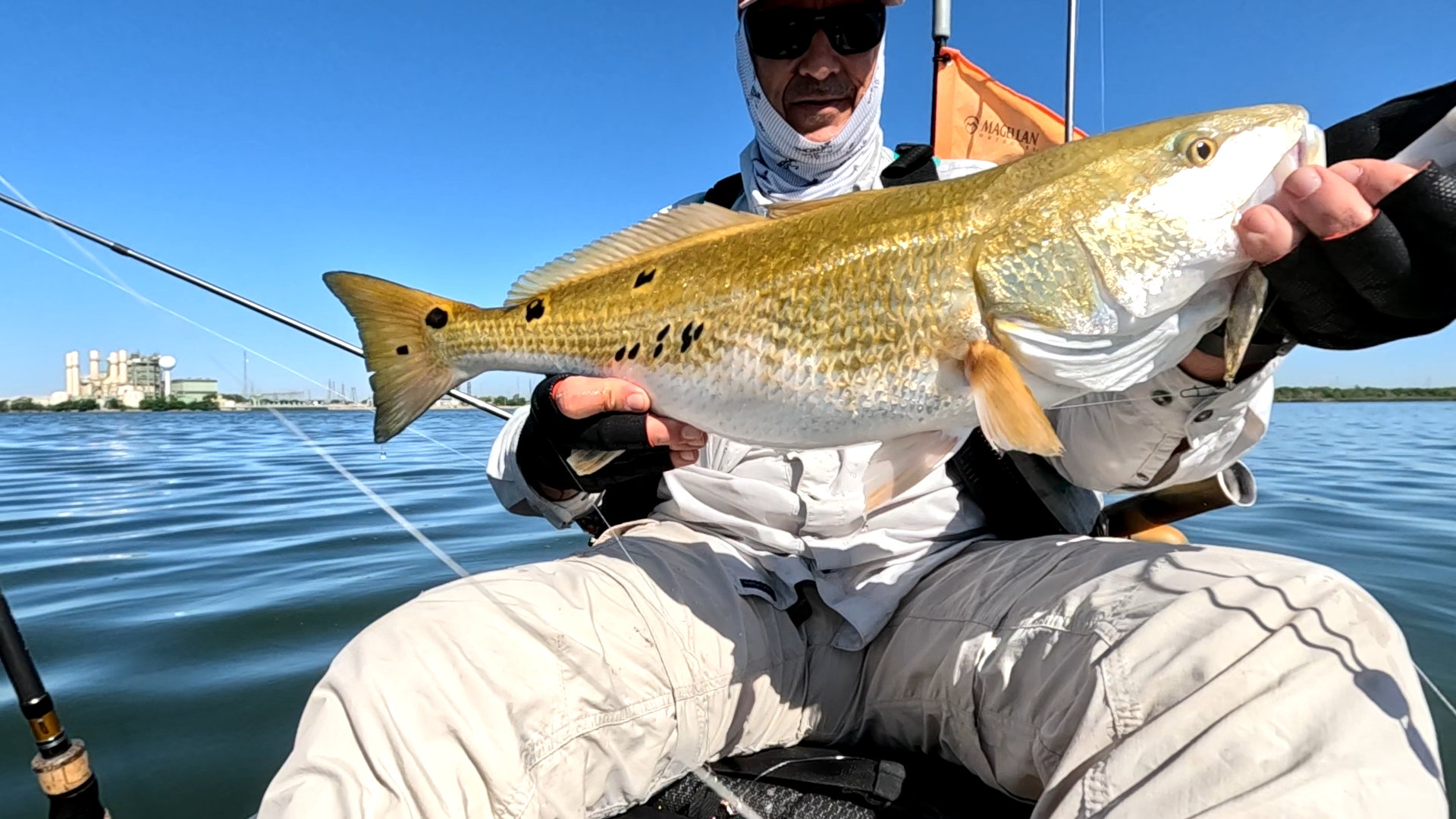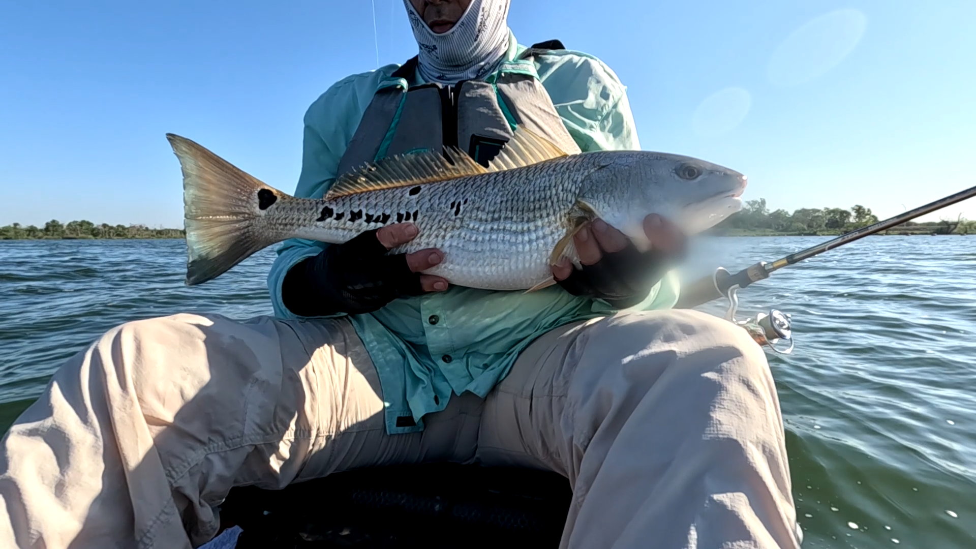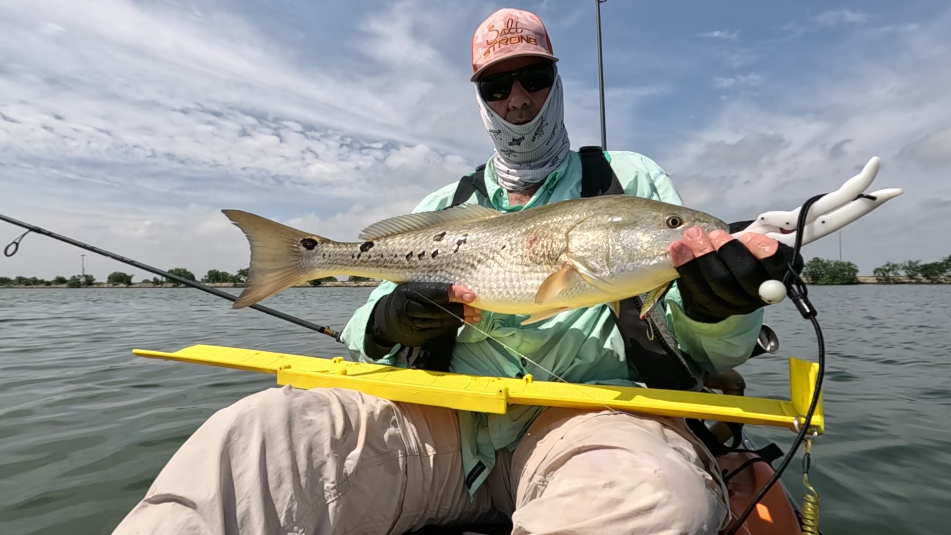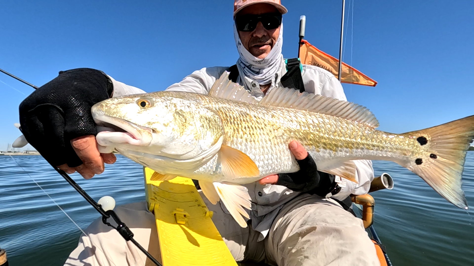 Largest redfish of the night caught kayak fishing at night on the way back; last outing of the trip.