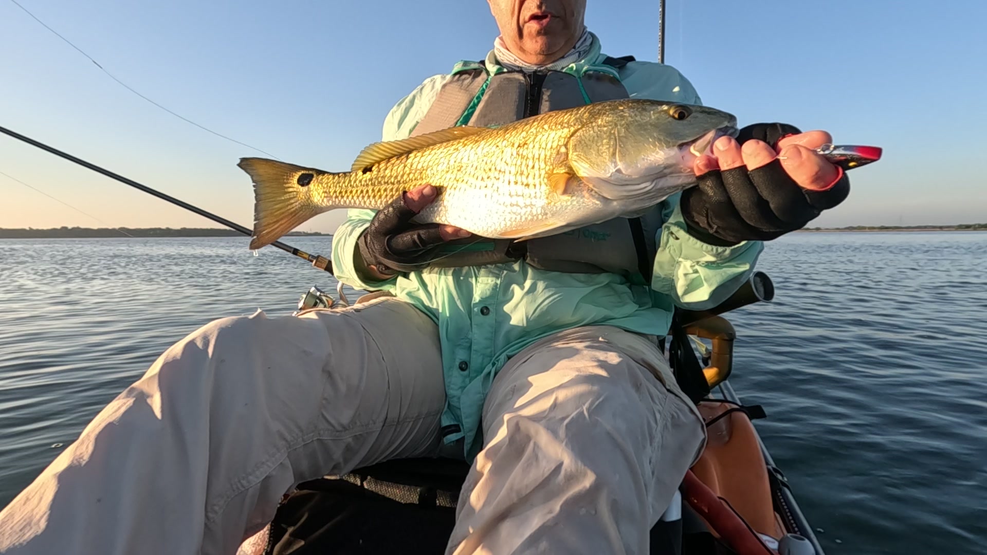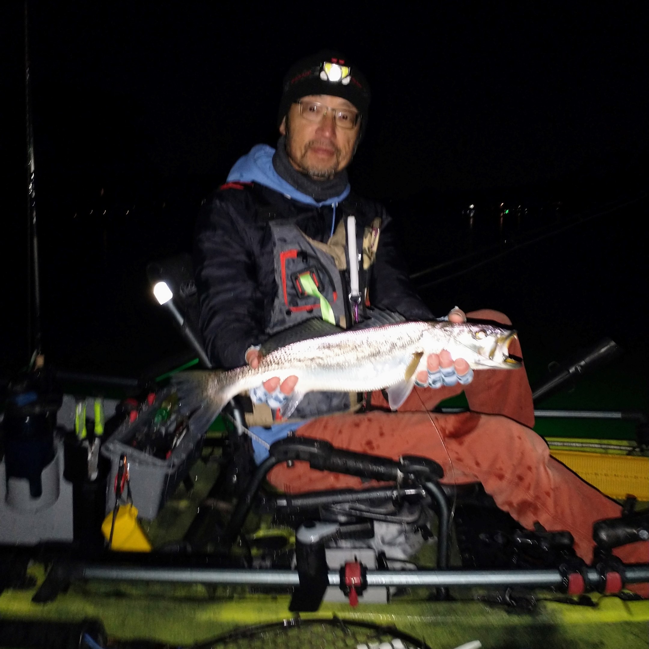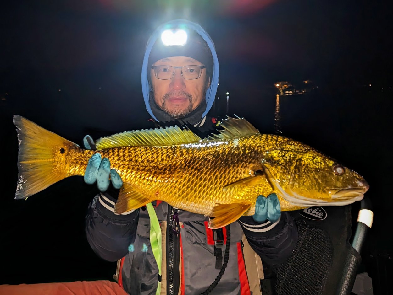 First redfish of the night caught kayak fishing at night on the way back; last outing of the trip.