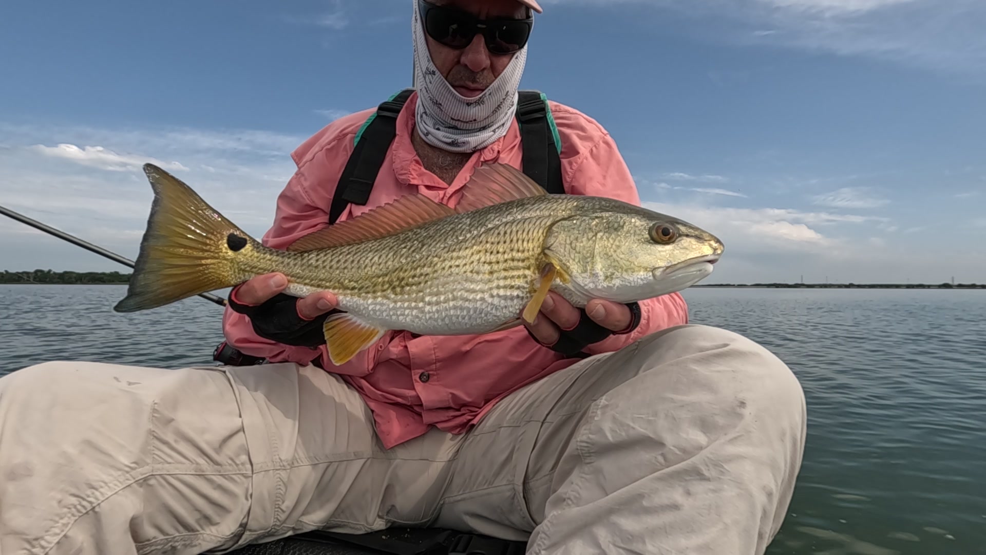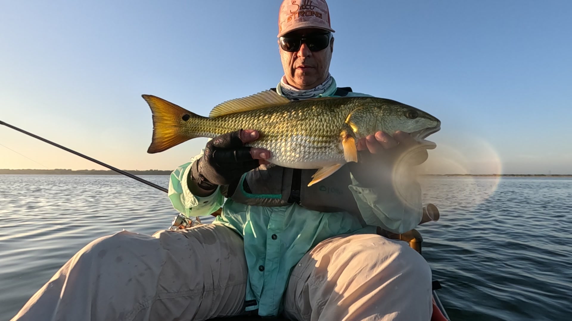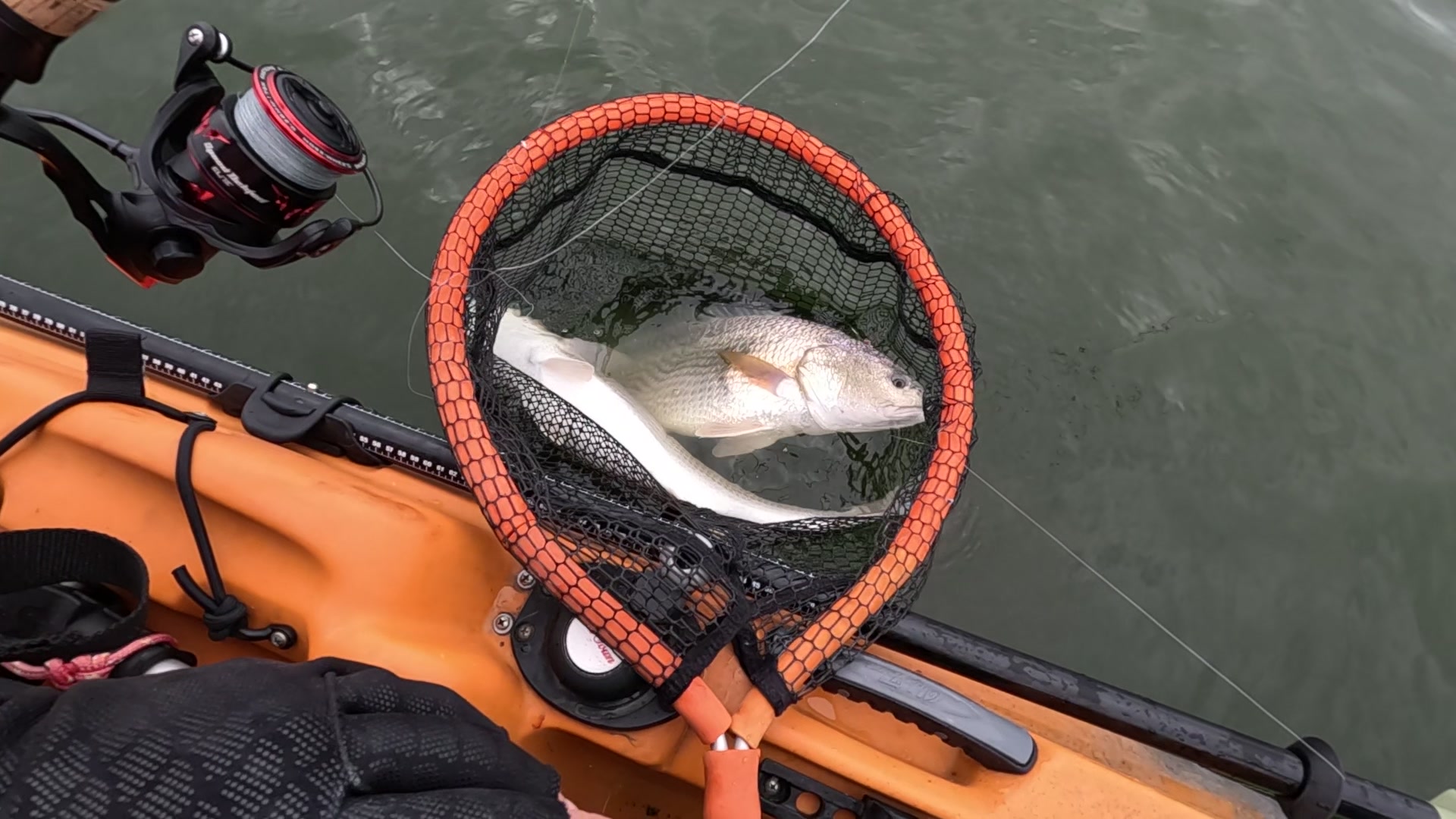 First redfish of the night caught kayak fishing at night on the way back; last outing of the trip.
